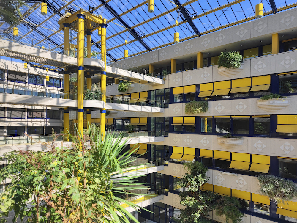 Dieses architektonisch ansprechende Gebäude befindet sich im Textilviertel unmittelbar an der Amagasaki-Allee. Das Highlight dieser Immobilie ist das Atrium mit mediterraner Bepflanzung. Eine flexible Raumaufteilung, hochwertige Ausstattung und der Anschluss an das Glasfasernetz sorgen für ideale Arbeitsvoraussetzungen.